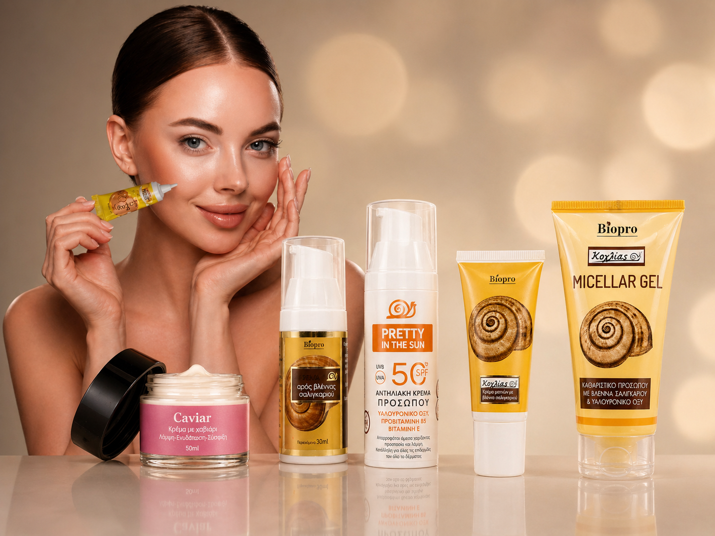 1+2 ΔΩΡΑ !Ορός Προσώπου Κοχλίας+Ενυδατική Κρέμα Προσώπου με γέλη Σαλιγκαριού+ Δώρο Micellar gel